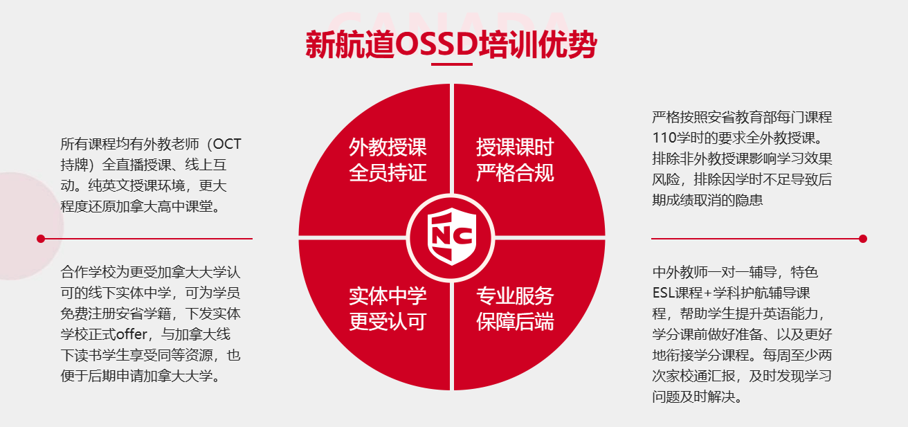 线上:加拿大高中在职OCT教师+新航道集团OSSD老师+新航道集团学科学管师